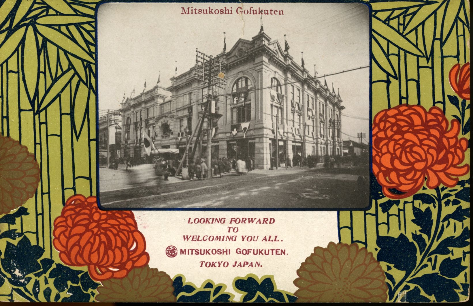 “Mitsukoshi Gofukuten; Looking forward to welcoming you all. Mitsukoshi Gofukuten. Tokyo Japan.,” Tokyo Urban Culture, accessed April 12, 2026, https://tokyo-urban-culture.omeka.fas.harvard.edu/items/show/535.